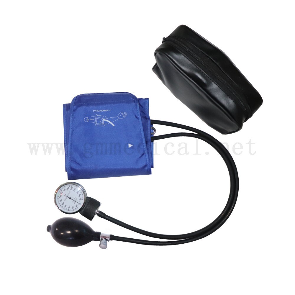 वयस्क मैनुअल रक्तचाप कफ, प्रेशर गेज और मुद्रास्फीति बल्ब के साथ दोहरी ट्यूब कफ, पोर्केट बैग के साथ।