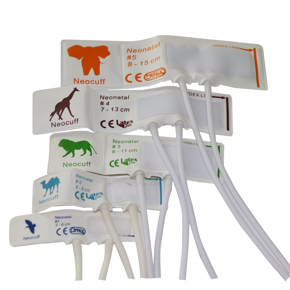 नवजात के लिए डिस्पोजेबल ब्लड प्रेशर कफ, निब कफ टीपीयू मटीरियल डुअल ट्यूब साइज 1-5,5 टुकड़ा / बैग।थिपीन कनेक्टर
