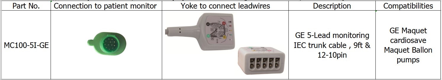 संगत GE MAQUET गुब्बारा पंप 5-लीड मॉनिटरिंग IEC ट्रंक केबल, 9FT और 12-10pin