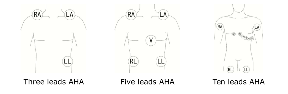 नीचे मानव शरीर पर इलेक्ट्रोड का कनेक्शन प्रकार: