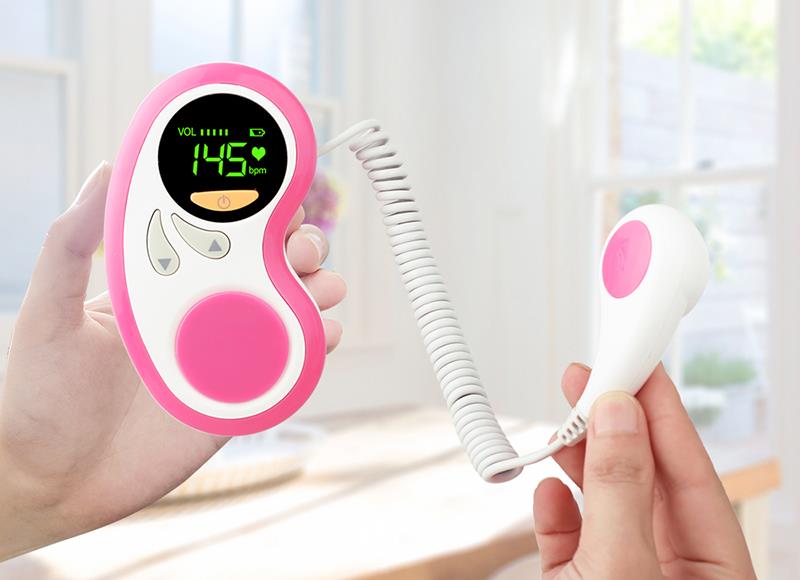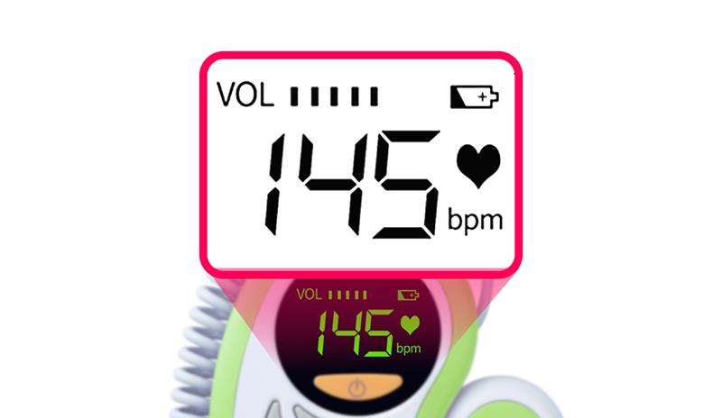 एलईडी-बैकलिट डिस्प्ले, भ्रूण की हृदय गति की अधिक सहज समझ, समायोज्य मात्रा, बच्चे के दिल की धड़कन को सुनना